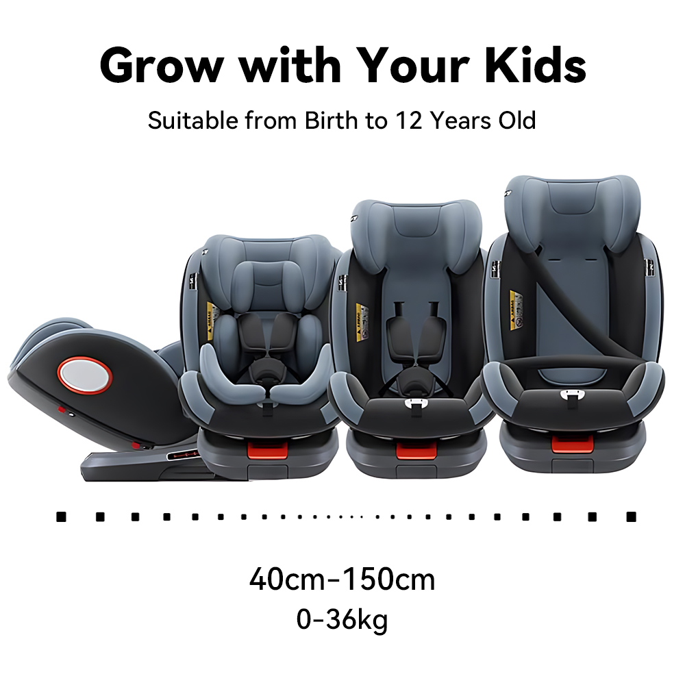 Designed to grow with your child, this car seat is suitable from birth up to 150 cm (approximately 12 years). For maximum safety, it supports extended rear-facing use from 40–105 cm (birth to around 4 years), providing enhanced protection for your child’s head, neck, and spine.