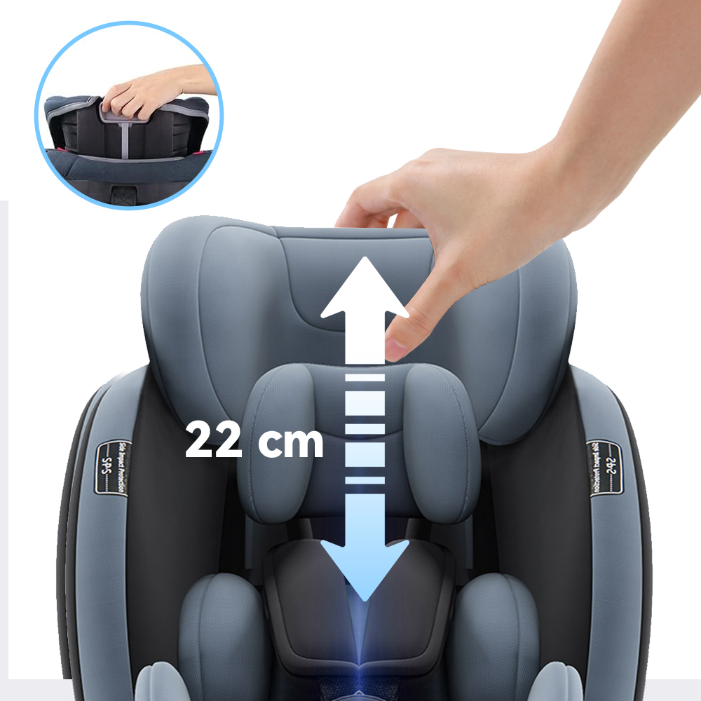 The headrest can be adjusted up to 22 cm, allowing the seat to grow with your child and ensuring proper head and neck support at every stage.