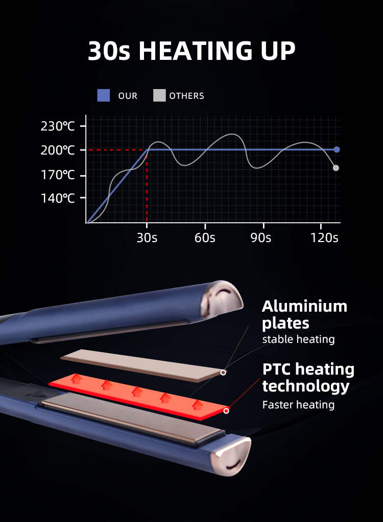 This 3 in 1 hair styling set includes a 1 Inch hair straightener, a 1.25 Inches curling iron and a hair straightener brush. With the detachable power cord, a single power cord can control three devices, which saves a lot of space. With this set of styling tools, you can achieve various hair designs.