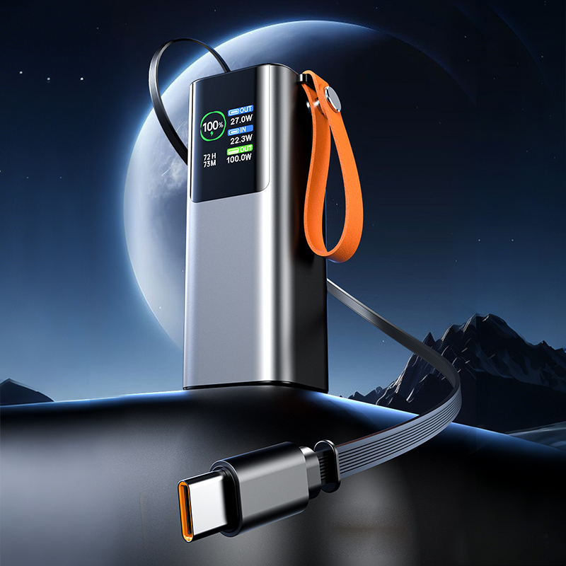Designed for everyday carry, the smooth surface feels great in hand and helps reduce fingerprint marks for a cleaner, premium appearance. It also features a built-in retractable USB-C cable (approx. 65–70cm) for added convenience, plus a side carry strap so you can grab it quickly and take it anywhere.