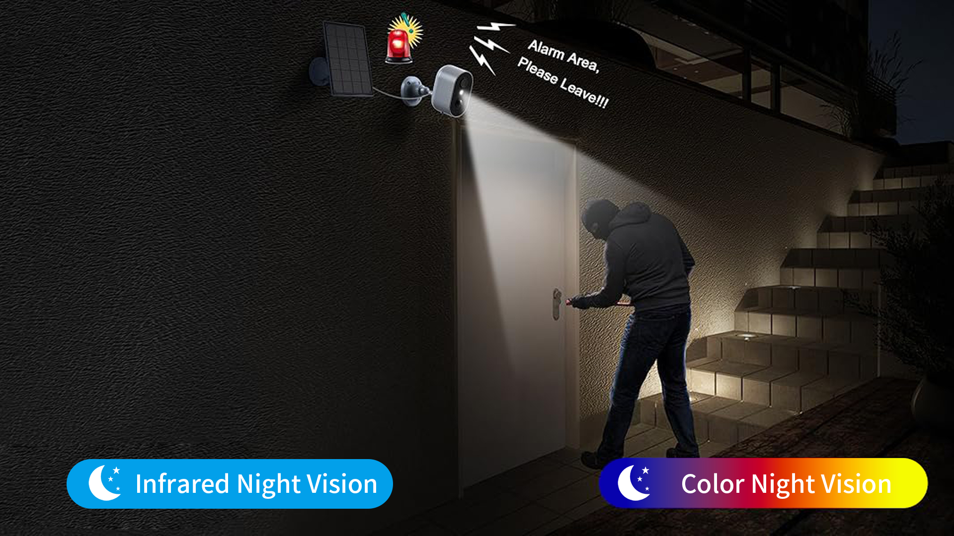 Aerivax outdoor security camera has upgraded lens, providing you with 3K picture and video whether day or night. You can monitor garden/front door/garage more clearly and won't miss any details!
