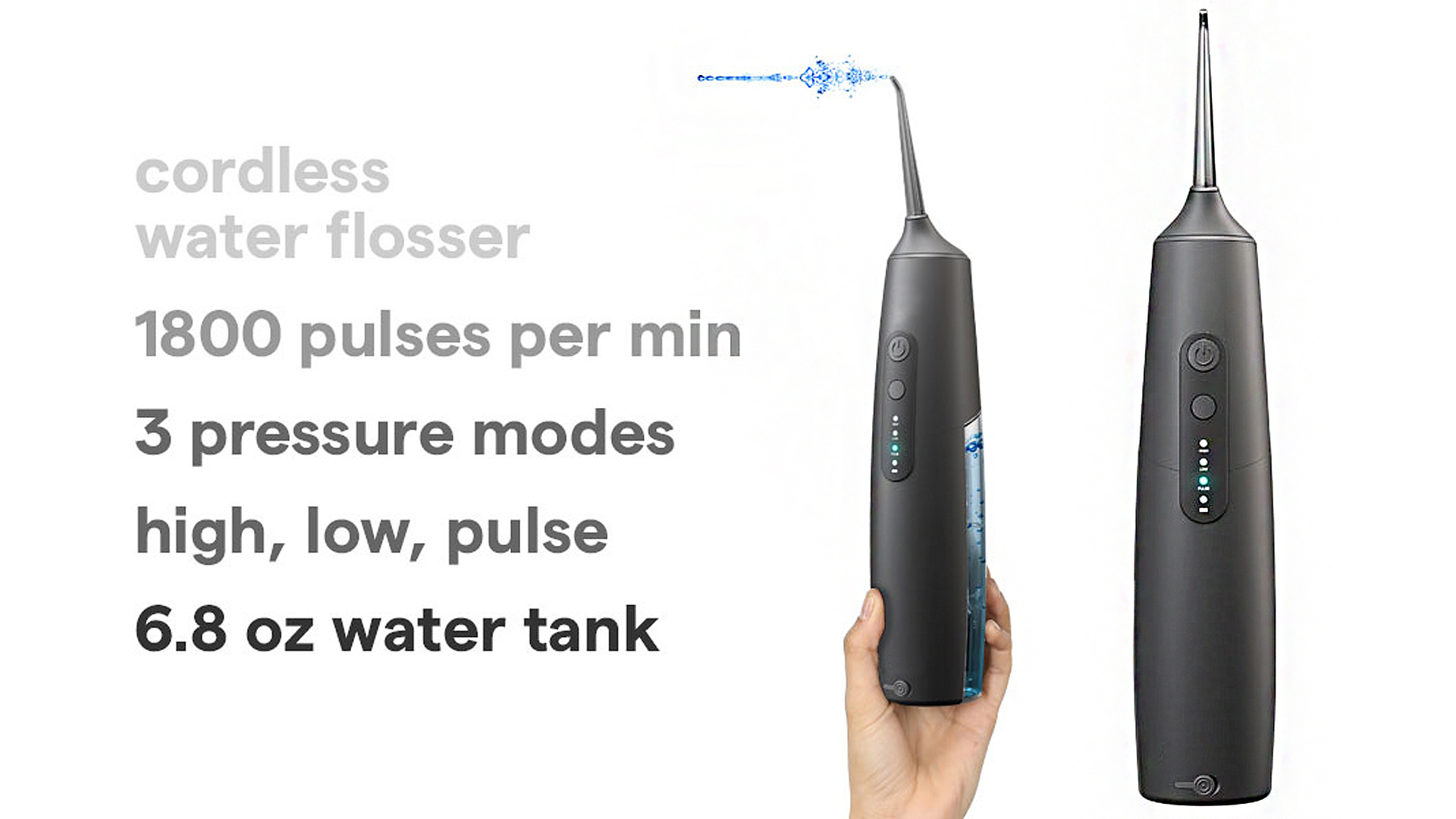 Newest Cordless Water Flosser offers a unique combination of water pressure with 3 flossing modes (High, Low, and Pulse) for the best teeth cleaning action and enhanced floss. Water pressure will massage your gums to prevent bleeding and deeply clean up dental calculus, food debris, that traditional flossing can't.